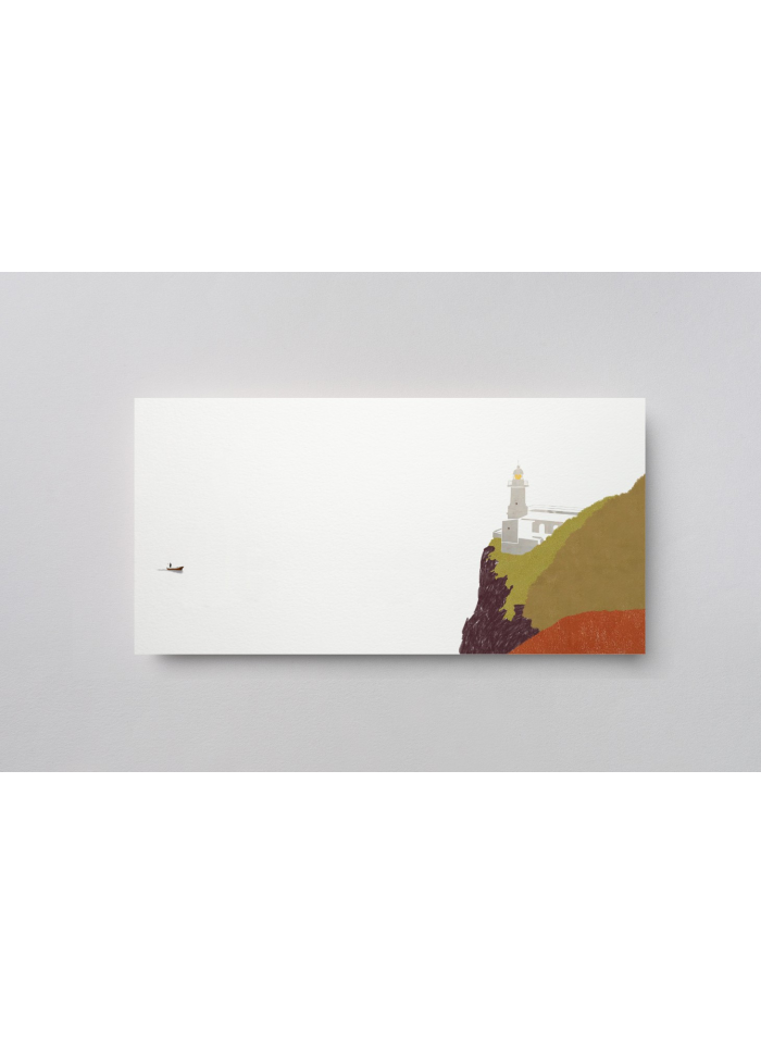 Uno de los vestigios de la "Belle Epoque" que van aguantando el progreso de San Sebastián es el faro del Monte Igueldo. Un pescador, atareado en su faena o en sus pensamientos, pone dirección a la luz vacía de la ilustración.