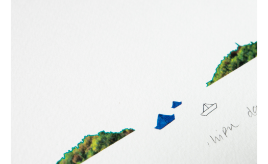 El papel dibuja el mar y el cielo con los volúmenes blancos característicos del papel de acuarela. Incluso con unos pocos elementos se puede representar bien un paisaje como el de la bahía de la Concha. Esta ilustración también pone de manifiesto la belleza de la sobriedad y la calidad del material que utilizamos.