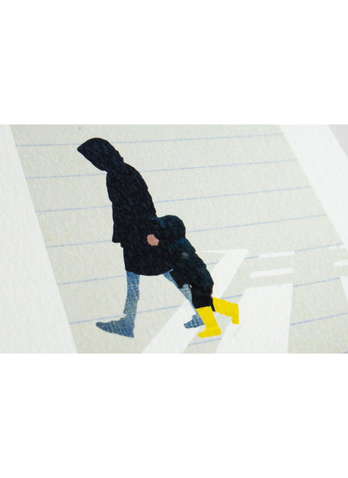 El cuaderno-papel que se utiliza en la base de la ilustración también puede ser otro exponente de la cotidianeidad de Donostia. En cualquier caso, esta ilustración resume bien la actuación de Koloreka: describe el paisaje donostiarra aportando a la imagen gestos de lo cotidiano.