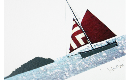 Esta lámina de la isla de Santa Clara nos transporta a una travesía en la bahía de San Sebastián, rumbo a la isla de Santa Clara. Una embarcación roja se destaca en el tranquilo mar azul, con el perfil de la isla de Santa Clara al fondo. Los destellos del agua de la lámina capturan la belleza de este viaje, evocando la serenidad y la emoción de explorar este rincón idílico de la costa donostiarra.