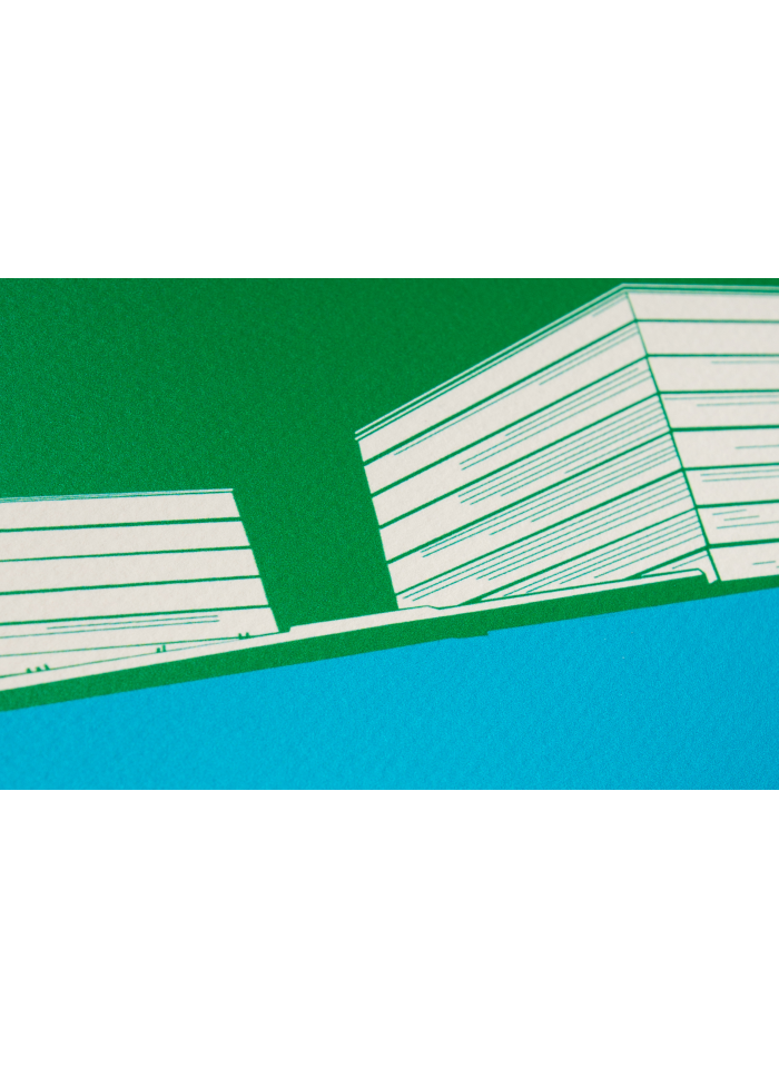 Esta ilustración del Kursaal, un icónico centro cultural en San Sebastián, rinde homenaje a la modernidad y la vitalidad de la ciudad. Los colores verdes y azules alegres capturan la energía de este lugar. Diseñado por el renombrado arquitecto Rafael Moneo, el Kursaal se presenta como dos cubos de vidrio translúcido, como 'dos rocas varadas', perpetuando la geografía y subrayando la armonía entre lo natural y lo artificial. Esta ilustración del Kursaal es perfecta para agregar un toque de color y modernidad a tu hogar.