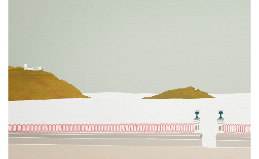 La ilustración "Allen" captura la serenidad del paseo de La Concha, tomando su nombre de la escena en el Rifkin 's Festival de Woody Allen, filmada en Donostia. Los colores transmiten calma y paz, evocando la sensación de un apacible paseo por la bahía. La obra rinde homenaje a la atmósfera única que Woody Allen inmortalizó en su película, transformando la escena cinematográfica en una experiencia visual que invita a disfrutar de la tranquilidad de La Concha.